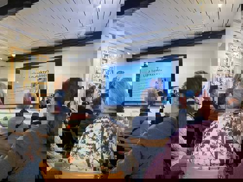 For et fuldt hus fortalte Michael Stoltze levende om sin læsning om Martin Andersen Nexøs møde med naturen i erindringerne - Under åben himmel. Han trak paralleller til sin egen oplevelse af naturen på bl.a. Balka.