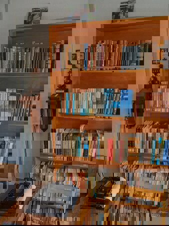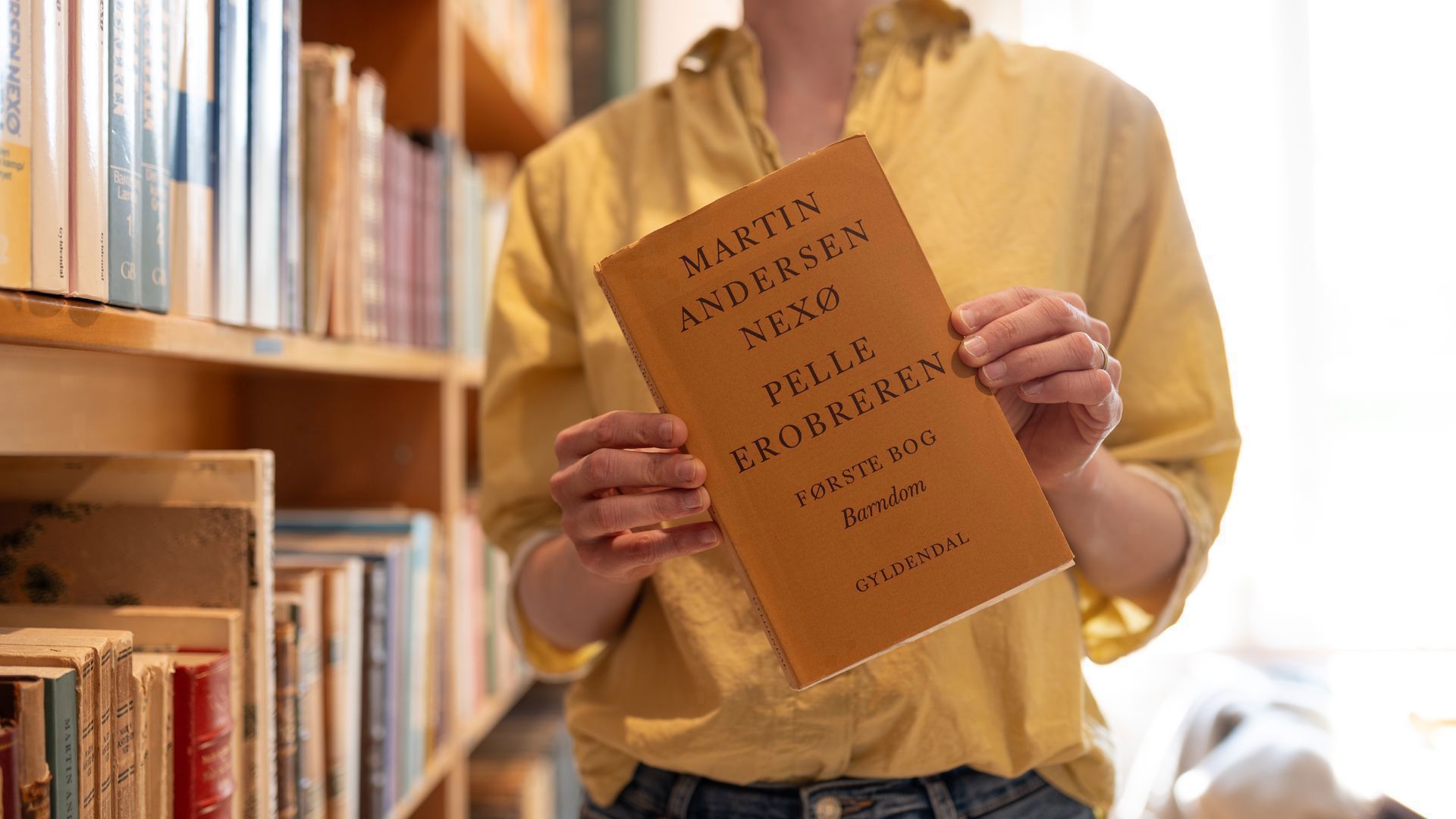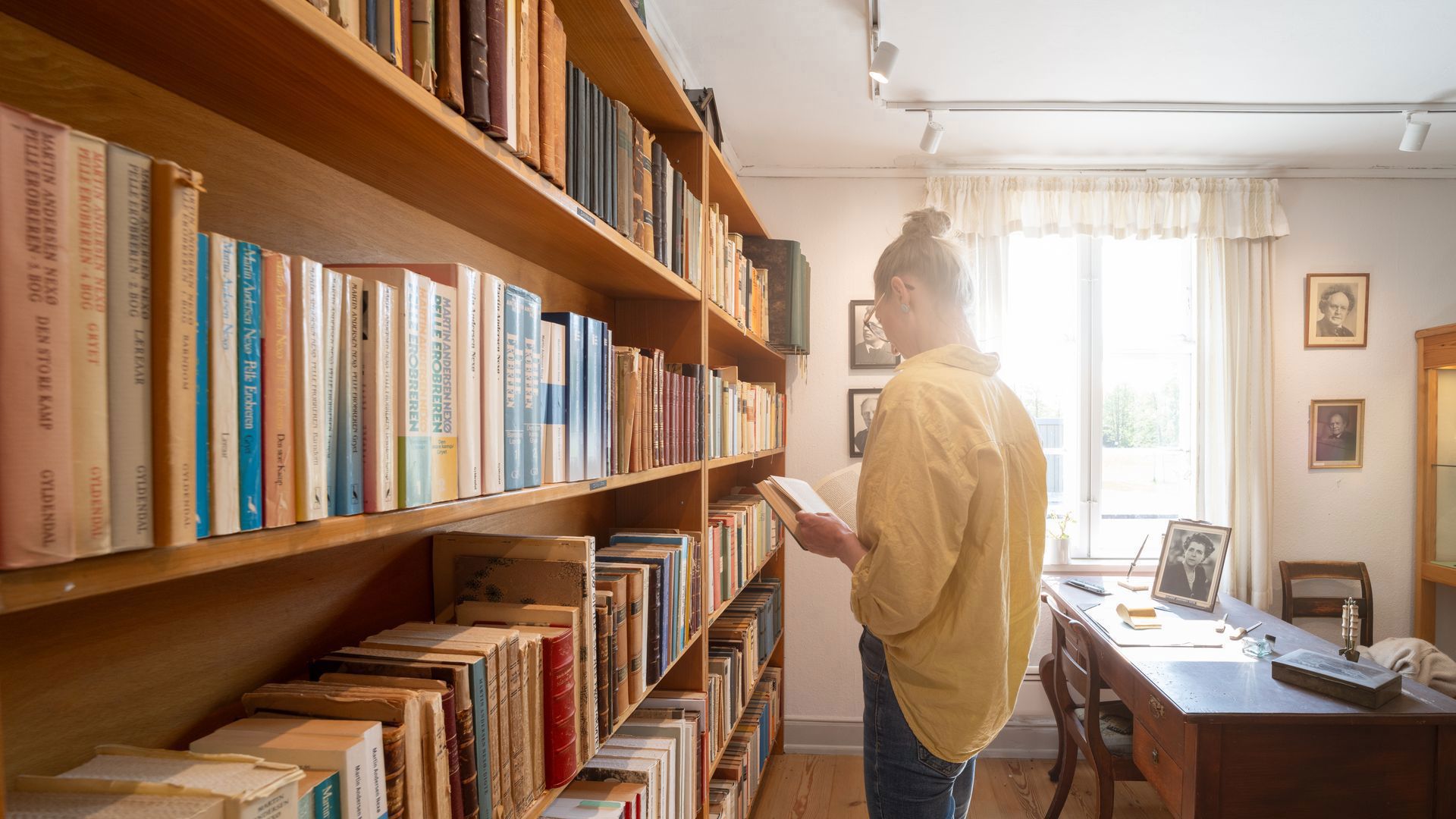 Museets bogreol med værker af Andersen Nexø