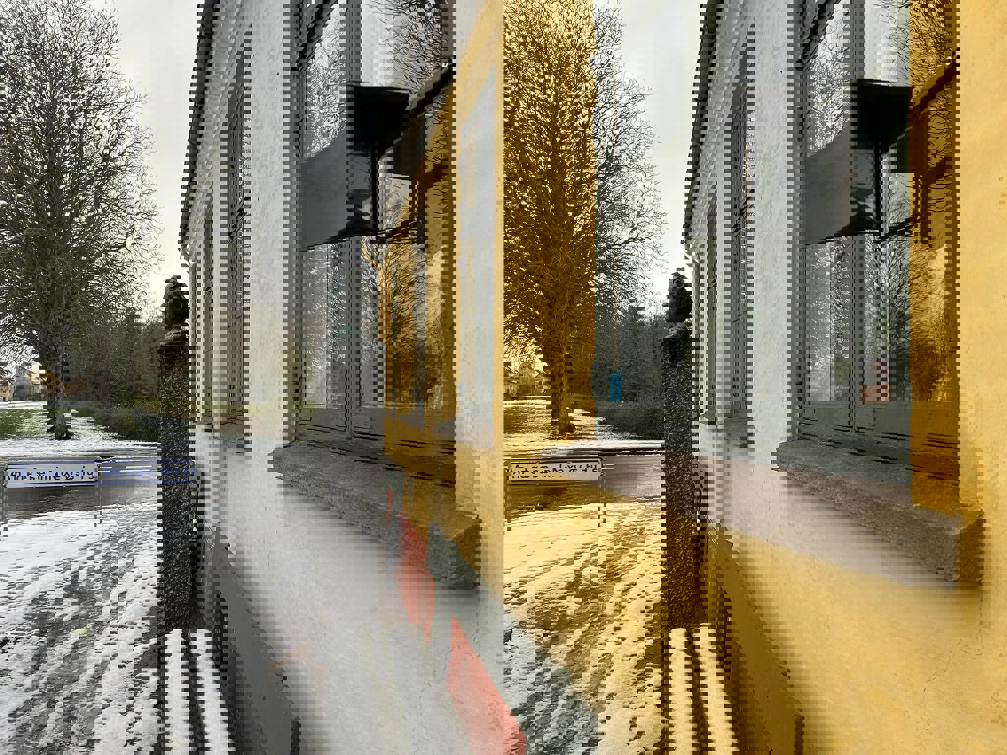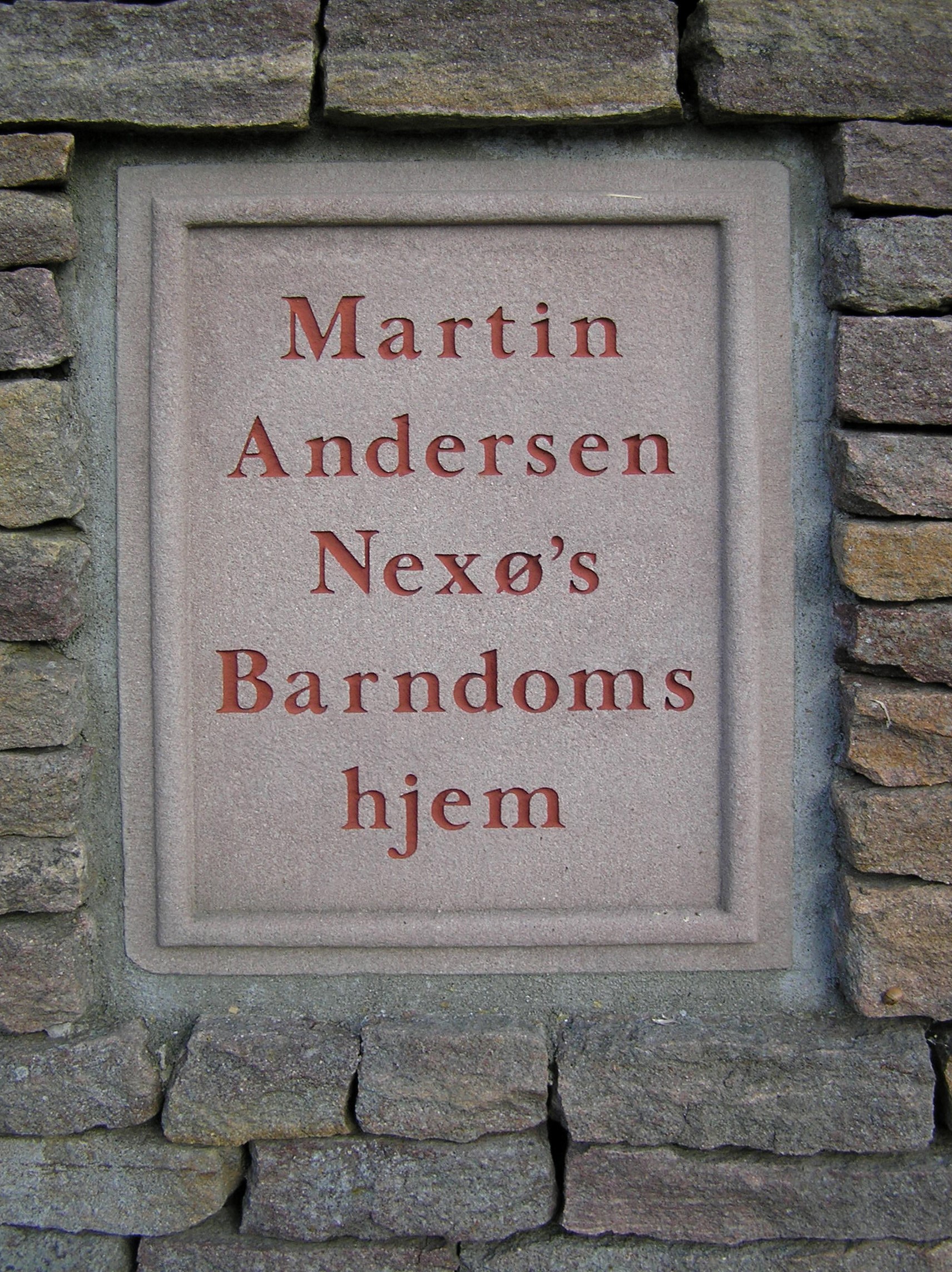 Pladen i stengærdet mod Andersen Nexø Vej
